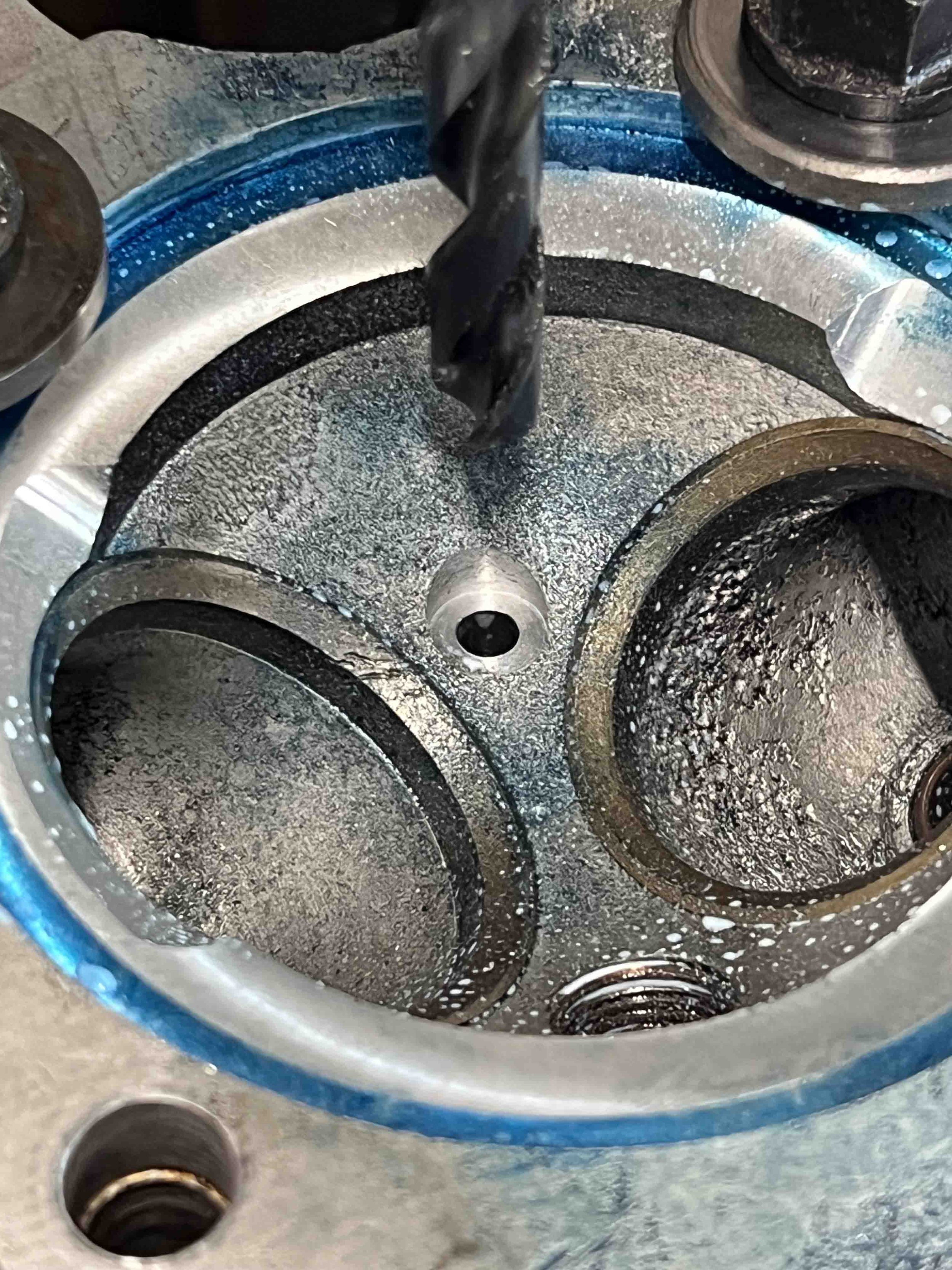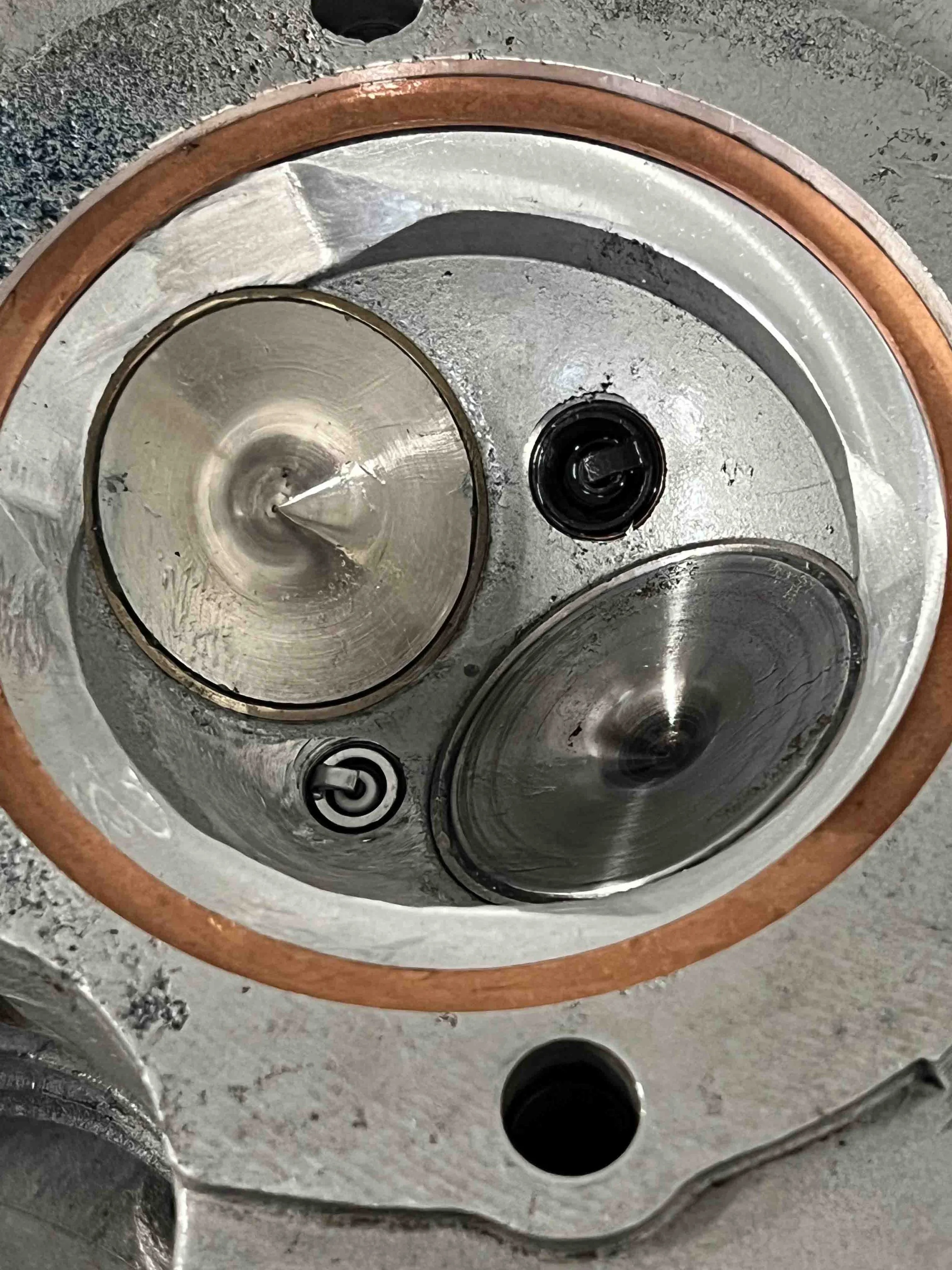 To address these issues we have developed a twin spark, squish band head conversion, based on a standard Viper head, a revised cam profile, and a MSS type, flatter top piston, which reduces the ignition advance to the 30 degree zone. The second spark plug, positioned on the opposite side of the combustion chamber, equalises and reduces the flame path, whilst the squish band promotes improved turbulence and mixing of the charge. The exhaust stub is increased to take a Venom sized pipe.